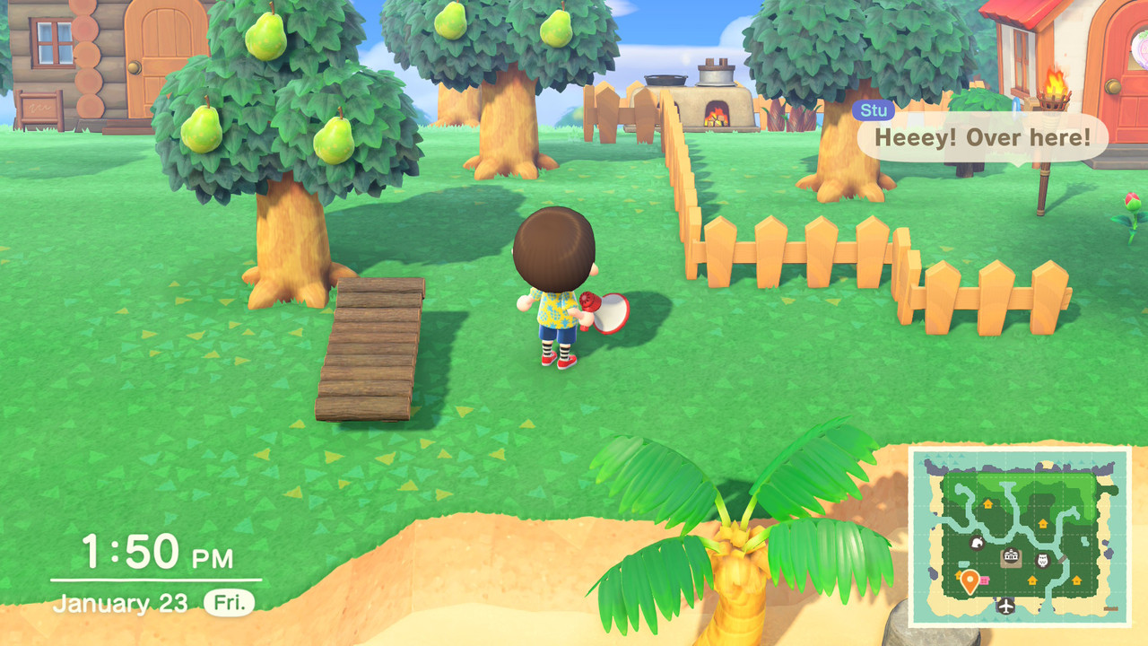 - Uso do megafone: o megafone, que pode ser adquirido na lojinha dos irmãos Timmy e Tommy Nook, faz você localizar qualquer aldeão da sua ilha rapidamente, com apenas um comando por voz, ou seja, chamando-o(a) pelo nome. Isso mesmo! E aí ele ou ela te chamará, exibindo a sua localização exata por um simples balão de fala;