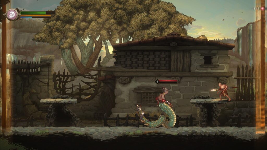 Falando de Sons of Sparta em termos de jogabilidade, não temos nada muito absurdo. Um “metroidvania” dos mais feijão com arroz possíveis, ele executa bem sua progressão — libere novas habilidades/armas, acesse áreas antes inexploradas, descubra novos itens/colecionáveis/upgrades, domine mais o combate e, por fim, conclua a história com uma porcentagem dos enormes mapas explorados.